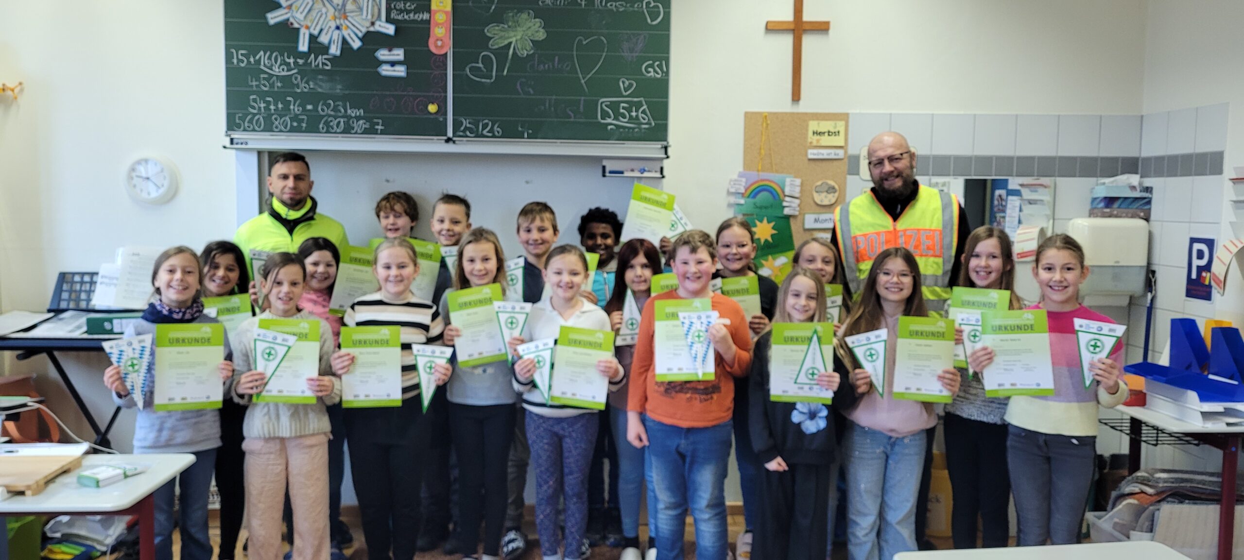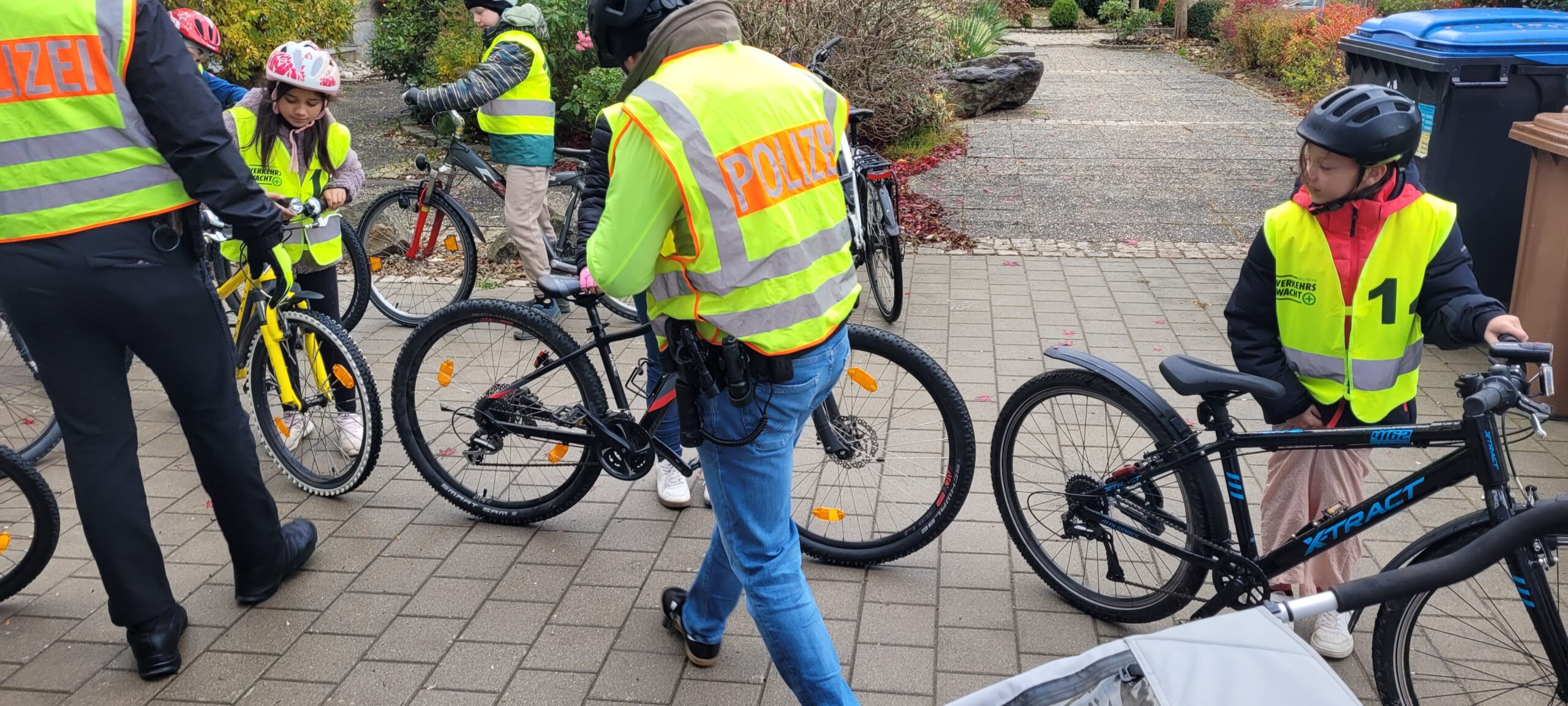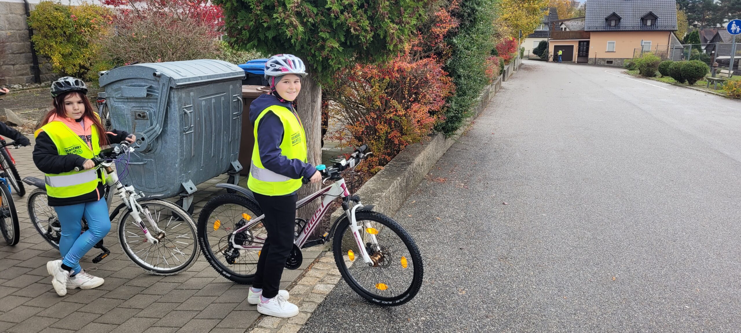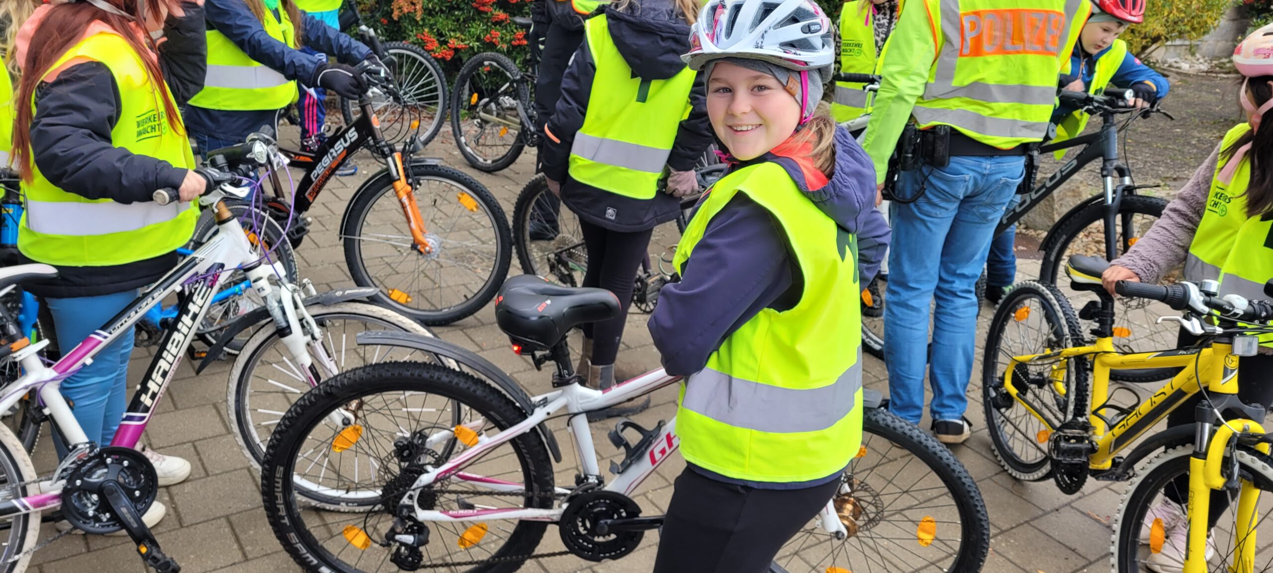 Eine Woche nach der bestandenen praktischen Fahrradprüfung durften am Dienstag, den 25.10.2025, alle Viertklässler ihr gelerntes Wissen über die Regeln des Straßenverkehrs noch in der Verkehrswirklichkeit in Eslarn unter Beweis stellen. Freudig wurden die Polizisten Wolfgang und Berni von den Kindern begrüßt. Nachdem die Begleiteltern eingewiesen wurden von der Polizei, machten sie sich sofort auf, sich als Streckenposten an die Gefahrenstellen in Eslarn zu stellen.