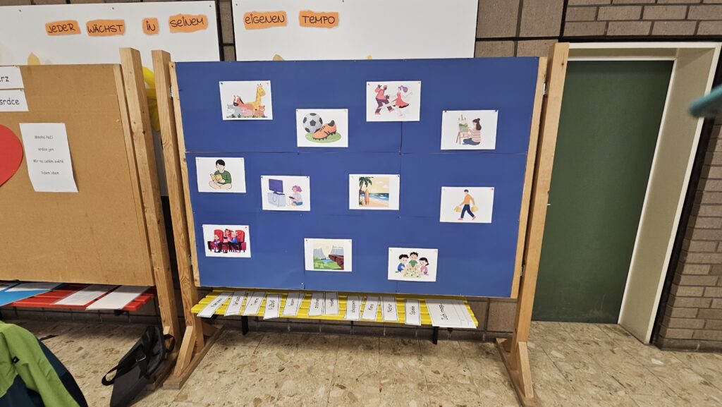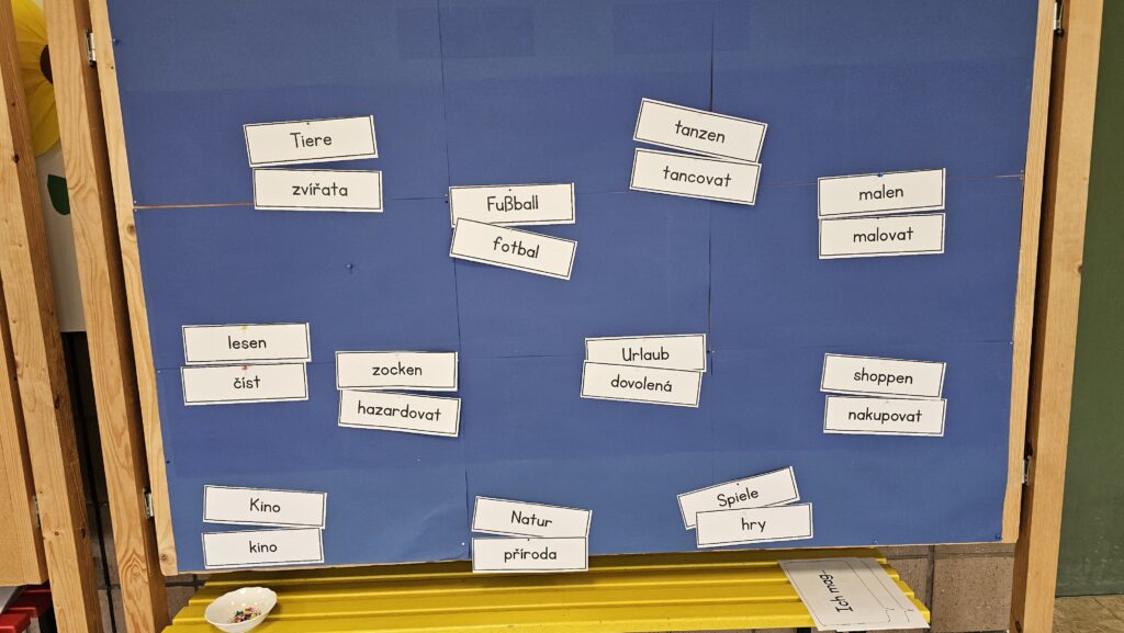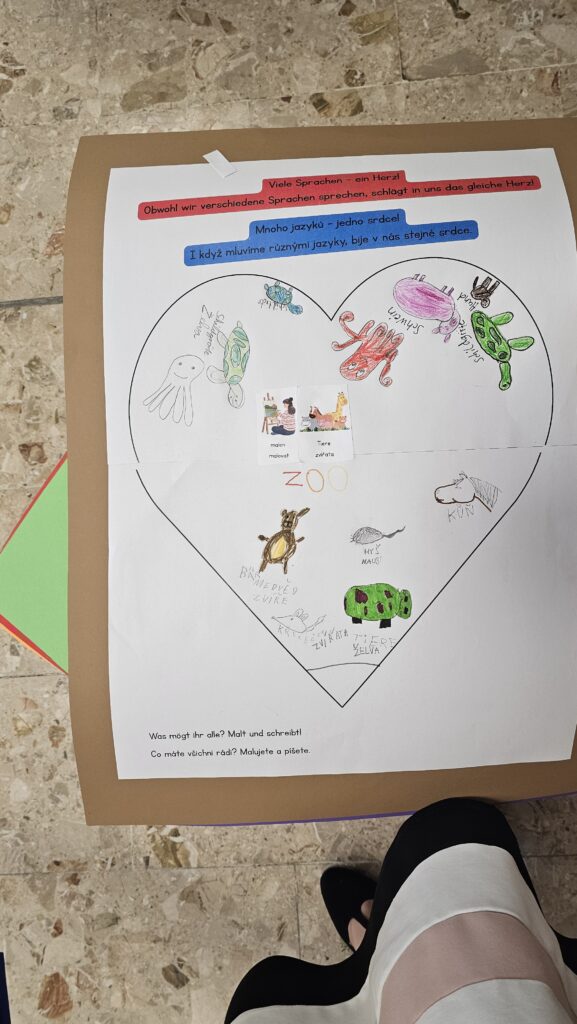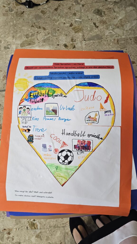 Die Kinder arbeiteten in gemischten Gruppen und beschäftigten sich mit verschiedenen Bausteinen des Gottesdienstes. So wurde ein Lied eingeübt, das sowohl auf Deutsch als auch auf Tschechisch gesungen wird. Dabei unterstützten sich die Schülerinnen und Schüler gegenseitig bei der Aussprache.