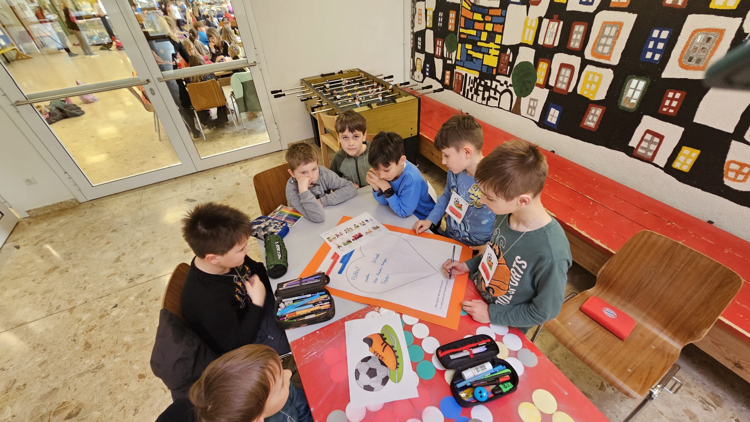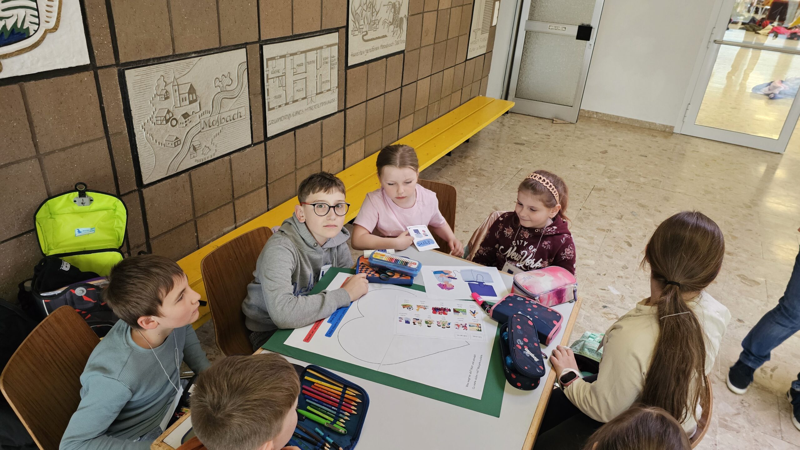 Zur Vorbereitung des Friedensgottesdienstes am 25.04.2026 trafen sich Schülerinnen und Schüler aus Moosbach und aus Bělá an der Schule in Moosbach. Ziel des Treffens war es, den Gottesdienst gemeinsam zu planen und vorzubereiten.