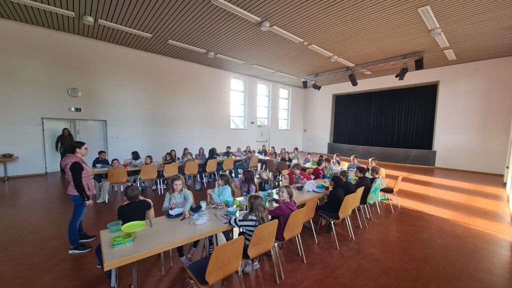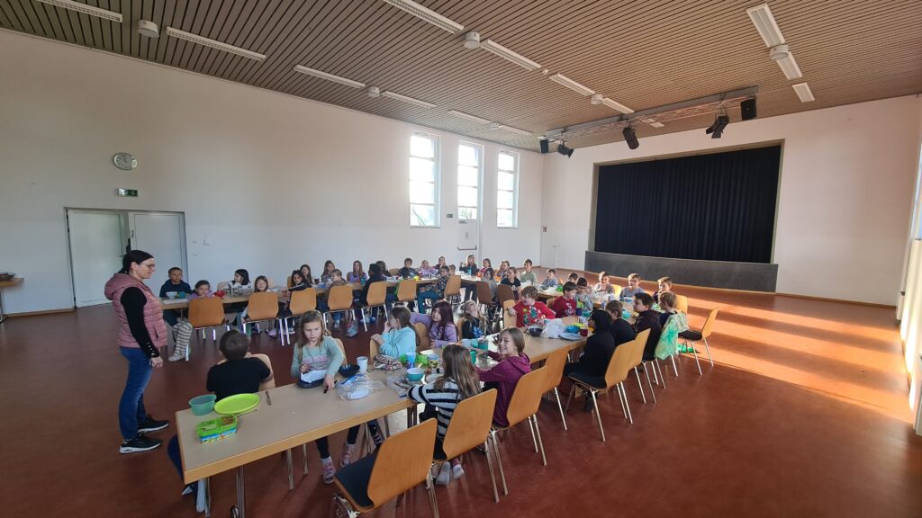 Mit großer Freude und noch größerem Appetit durften sich die Kinder der Grundschule heute über ein besonderes Highlight freuen: Der Elternbeirat hatte ein gesundes Frühstück für alle vorbereitet! Schon früh am Morgen wurde in der Aula geschnippelt, geschmiert und liebevoll angerichtet – frisches Obst, knusprige Vollkornbrötchen, Käse, Gemüsesticks, Müsli und Joghurt warteten auf die hungrigen Schüler*innen.