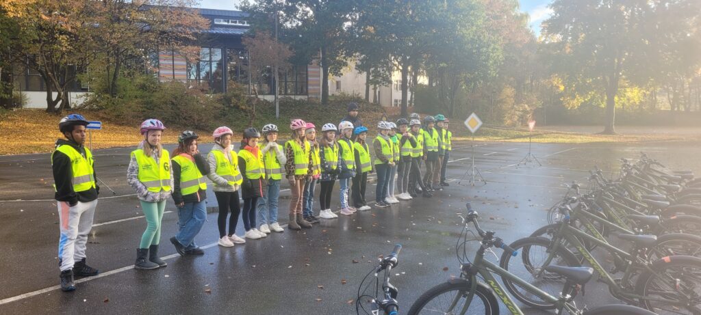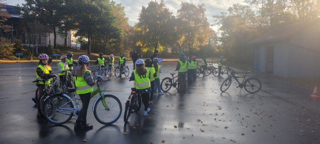 Am Dienstag, den 21.10.2025, fuhren die 4. Klässler sehr nervös nach Vohenstrauß zur Verkehrsschule. Schließlich stand die praktische Fahrradprüfung an. Sie hatten aber keinen Grund dazu. Am Vortag im Klassenzimmer wurden die Schritte des Umfahren eines Hindernisses und des richtigen Linksabbiegens nochmal kleinschrittig besprochen und simuliert, auch bei der mündlichen Wiederholung auf der Hinfahrt im Bus, zeigten die Kinder, dass sie alles im Kopf parat hatten und für die Prüfung gerüstet waren. Im 1. Teil der Prüfung fuhren die Kinder in zwei Gruppen eine vorher eingegangene Strecke nach. Im 2. Teil der Prüfung mussten die Kinder im gesamten Parcours der Verkehrsschule insgesamt 10 Minuten fehlerfrei fahren. Die Polizisten waren sehr nett und halfen noch bei kleinen Missverständnissen. Kurz vor halb zehn war es endlich geschafft und die Polizisten hatten die wenigen Fehlerpunkte für jedes Kind zusammengezählt. So war sicher: Alle Eslarner Kinder haben die praktische Fahrradprüfung mit Erfolg bestanden. Stolz und sehr erleichtert fuhren die Schützlinge mit Frau Bauer wieder an die Schule zurück.