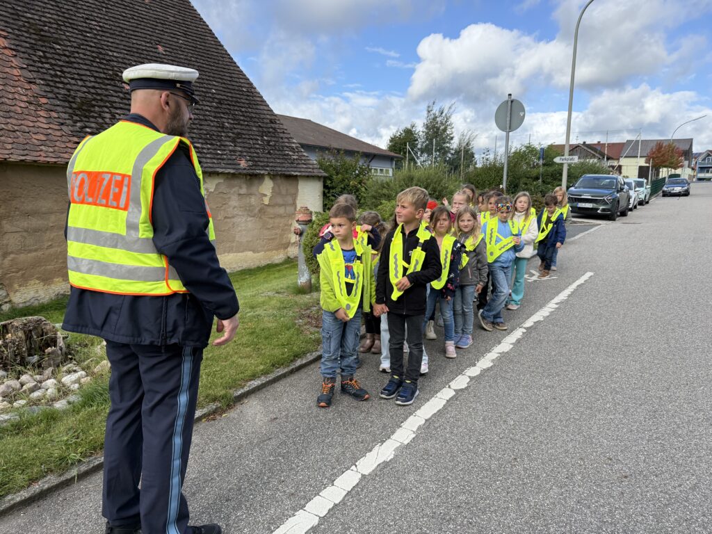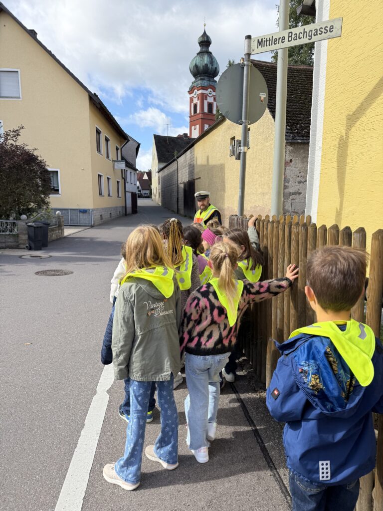 Mit viel Geduld erklärte Herr Piehler alles und beantwortete die Fragen der Erstklässler. So fühlen sich die Kinder nun sicherer auf ihrem täglichen Weg zur Schule.