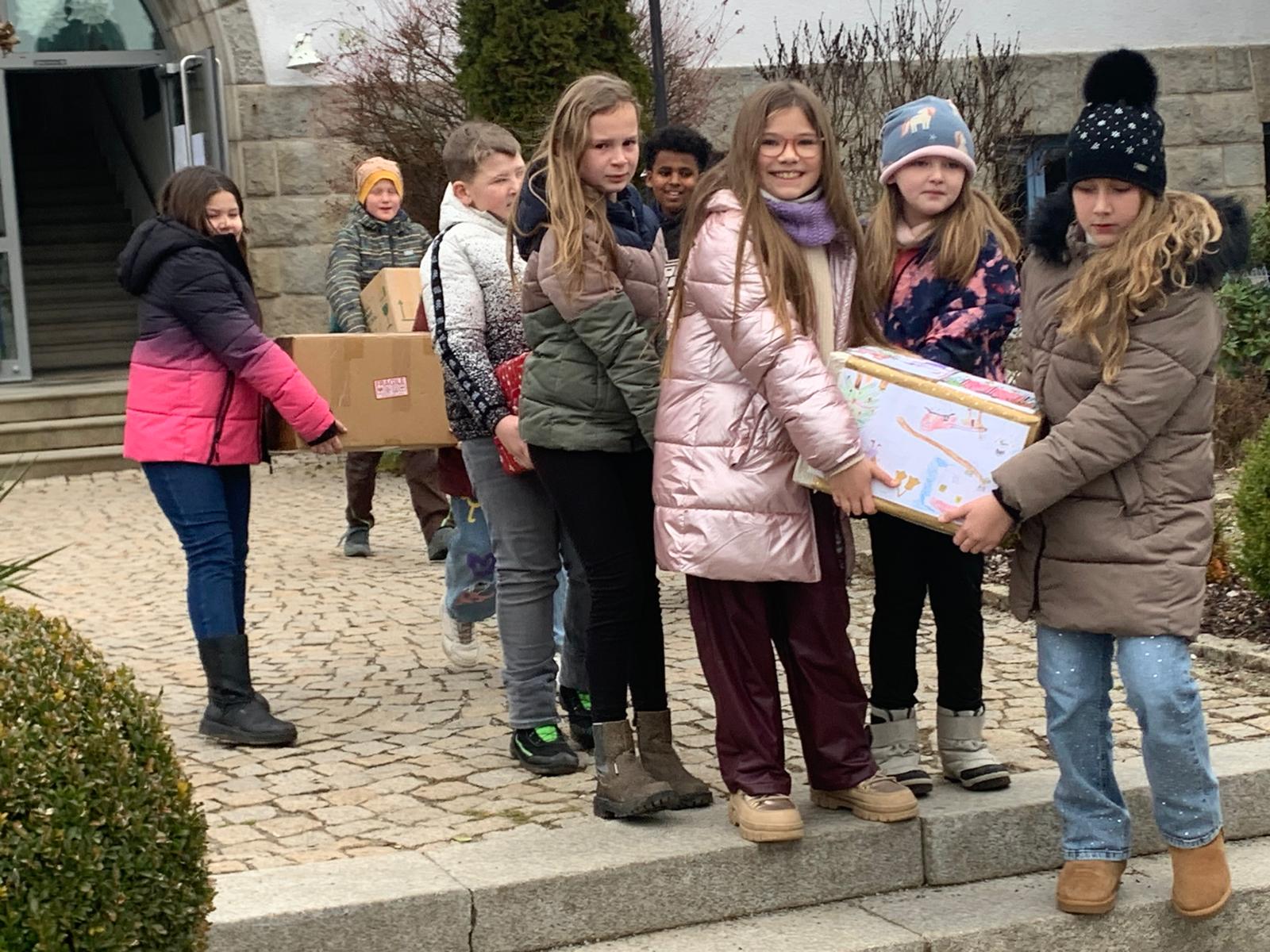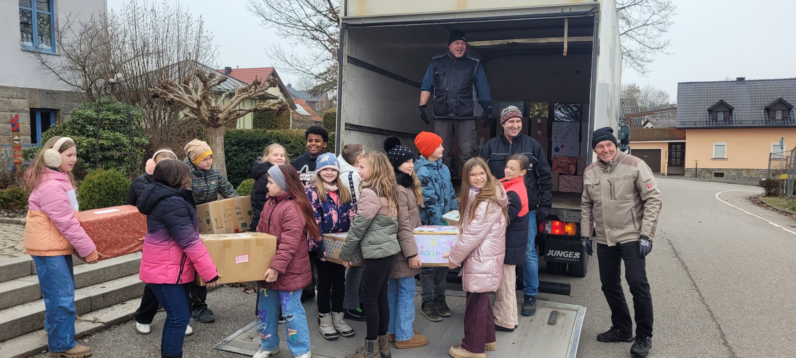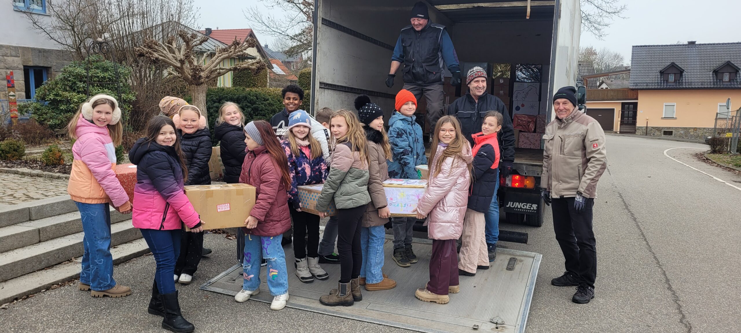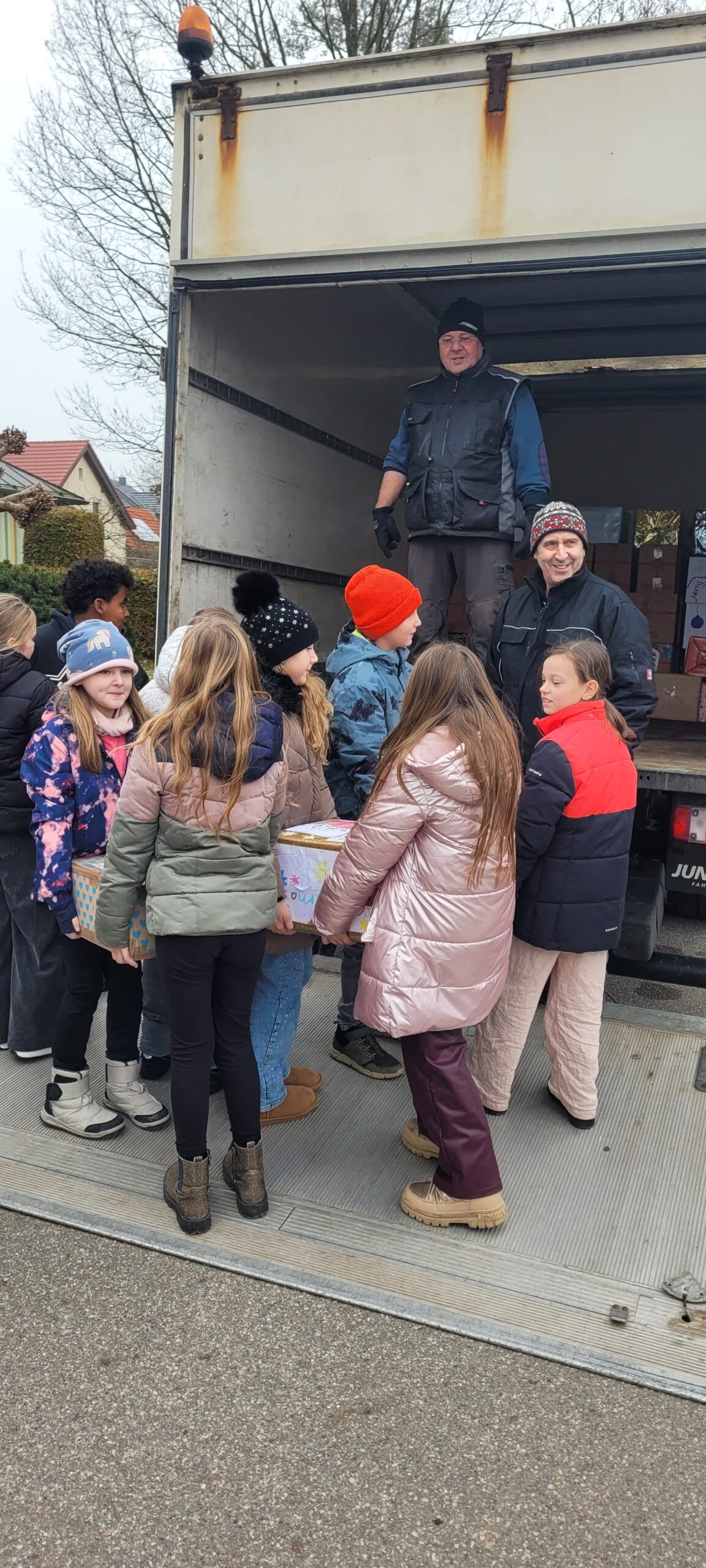 Auch in diesem Jahr beteiligte sich die Grundschule Eslarn am Projekt „Weihnachtstrucker“ der Johanniter. Am heutigen Dienstag, den 16.12.25, kam ein riesiger Laster an die Schule, der die wundervoll bemalten und verzierten Weihnachtspakete auflud. Zum ersten und letzten Mal durften die 4. Klässler die schweren Pakete tragen. Die ganze Adventszeit über packte jede Klasse sowie auch viele einzelne Kinder zu Hause Weihnachtspakete für die Menschen, die es am dringendsten brauchen, mit der dafür vorgesehenen Packliste der Johanniter. Vielen Dank für diese tolle Aktion. Jedes Kind war mit voller Einsatz dabei und hat voller Eifer gebastelt bzw. von zu Hause die lebenswichtigen Lebensmittel und Gegenstände mitgebracht. Eine tolle Aktion zum gegenseitigen Helfen in der Weihnachtszeit! Vielen Dank für das Abholen und die tolle Organisation von Frau Mensch!