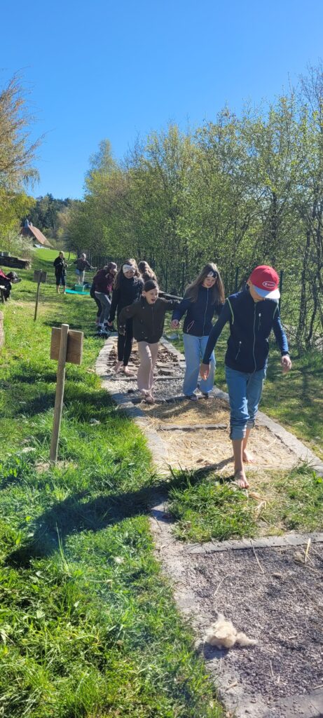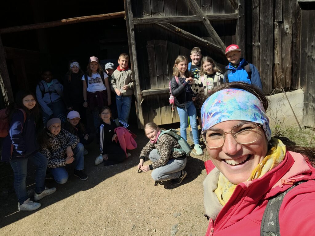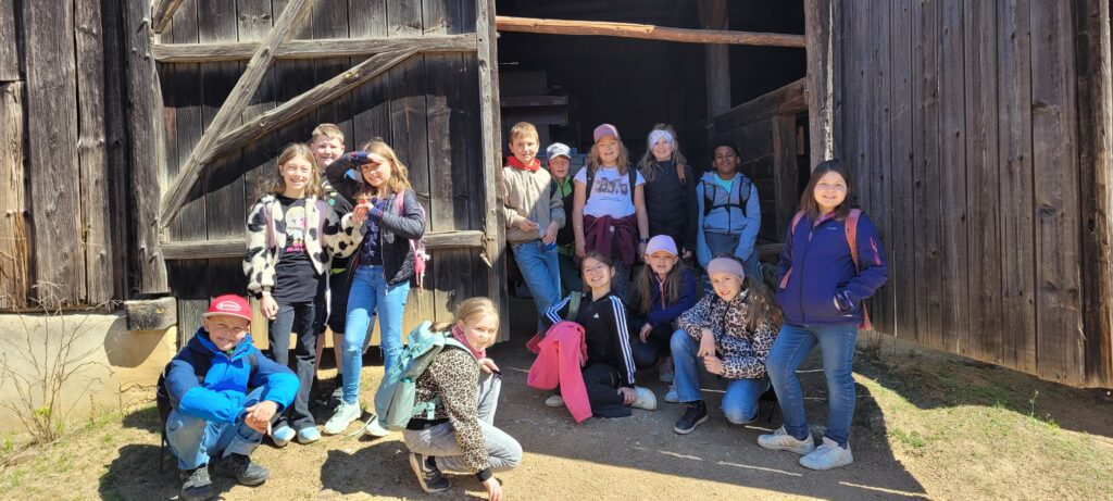 Zum Abschluss des ereignisreichen Tages durften die Kinder noch einen Blick in die historischen Gebäude des Freilandmuseums werfen. Besonders beeindruckend war der Schweinestall direkt neben dem Herrenhaus, der anschaulich zeigte, wie eng Mensch und Tier früher zusammenlebten. Außerdem bestaunten die Schülerinnen und Schüler alte landwirtschaftliche Geräte wie den Handpflug und bekamen so einen lebendigen Eindruck von der Feldarbeit vergangener Zeiten.