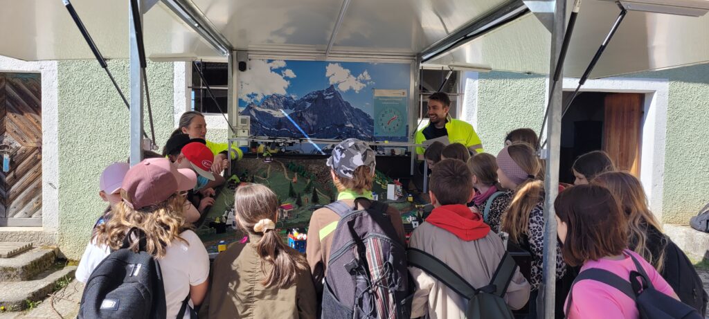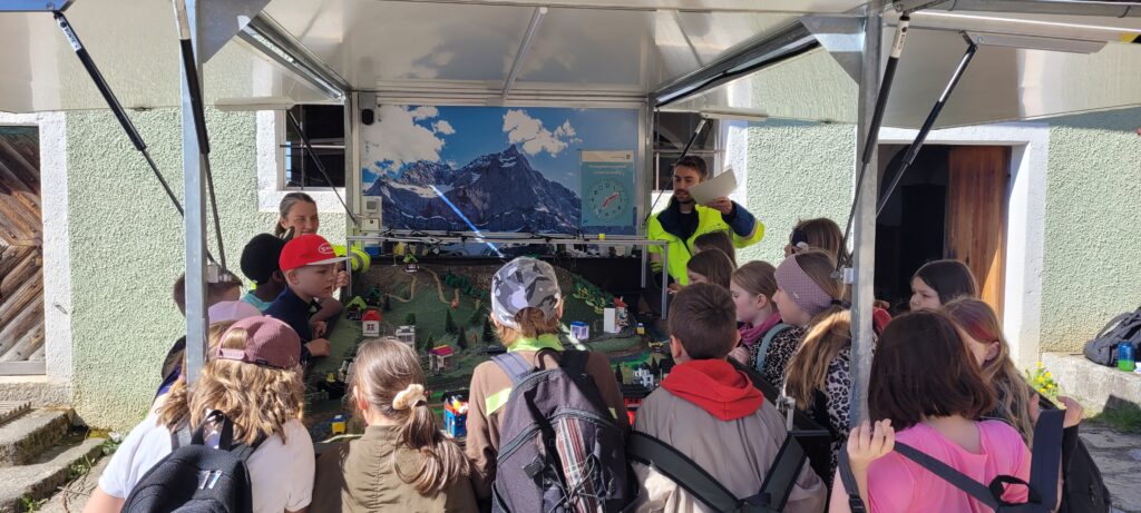 Auch das Wasserwirtschaftsamt hatte eine spannende Station aufgebaut: Mit einem Naturkatastrophensimulator konnten die Kinder anschaulich nachvollziehen, wie Hochwasser entsteht. Gleichzeitig lernten sie, wie Schutzmaßnahmen wie Dämme, Mauern und große Rechen helfen können, solche Gefahren einzudämmen.