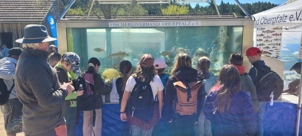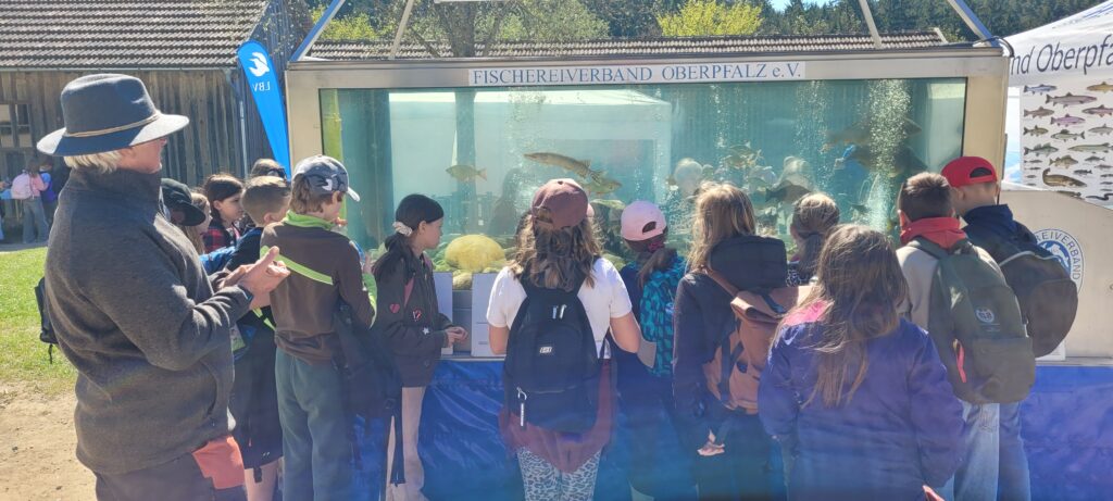 Ein weiteres Highlight bot der Fischereiverband der Oberpfalz mit einem großen Aquarium. Hier konnten verschiedene heimische Fischarten beobachtet werden. Dabei wurde deutlich, wie wichtig der Schutz dieser Tiere und ihrer Lebensräume ist.